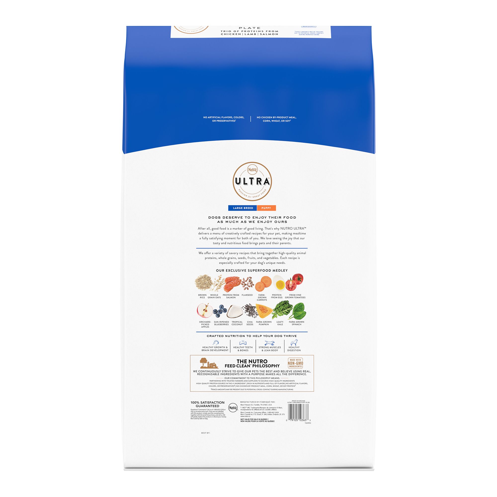 Bag of NUTRO ULTRA Large Breed Adult Dry Dog Food with a Trio of Proteins From Chicken Lamb and Salmon. Up to 2 cash back Nutro Ultra Chicken Brown Rice Large Breed Puppy Food contains a blend of natural oils rich in DHA for brain development and a blend of proteins rich in amino. An individual dog may differ from this guide.
